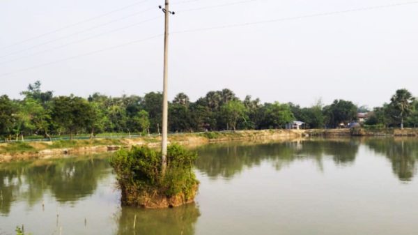 পুকুরের মাঝে বিদ্যুতের খুঁটি, আতঙ্কে রয়েছে গ্রামের মানুষ